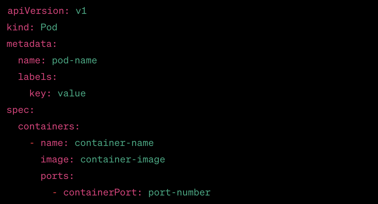 - kind: 리소스의 종류를 지정합니다. Pod를 생성하므로 Pod를 사용합니다.